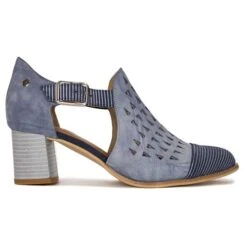 Des couleurs riches, des motifs et des combinaisons uniques de divers matériaux rendent les chaussures MACIEJKA inégalées. Des escarpins élégants en cuir naturel, velours et nubuck de couleur bleue avec un bout en amande et un talon monté sont le modèle parfait pour la saison printemps-été. La semelle est fabriquée dans un matériau de haute qualité. Un talon haut de 6 cm, confortable et stable, affine naturellement la jambe et constitue une base solide pour l’ensemble de la silhouette. L’intérieur et l’insert en cuir naturel doublé de mousse souple augmentent le confort de port. Une boucle dorée et un insert en caoutchouc à l’intérieur de la tige permettent d’ajuster parfaitement les chaussures à la largeur du pied. Classiques et beaux, ils sont le complément parfait à la tenue d’une femme.