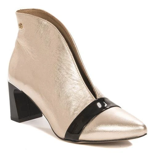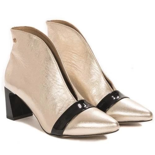 Les bottes pour femmes présentées de la marque polonaise Maciejka sont fabriquées en cuir à grain naturel de couleur or avec un éclat métallique. Les bottes ont une tige extrêmement coupée de manière intéressante avec une « fissure » caractéristique. Le bout de la chaussure est pointu. Modèle à enfiler. L’intérieur et l’insert sont en cuir naturel. Le tout repose sur une semelle en matériau de haute qualité et un talon bloc d’une hauteur de 6,5 cm. Des bottines extrêmement stylées et élégantes rendront chaque jour plus agréable et complèteront parfaitement de nombreux styles.